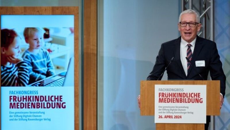 Rund einhundert Teilnehmende haben sich am Freitag, 26.04. in der Landesvertretung Baden-Württemberg in Berlin getroffen, um bei einem Fachkongress der Stiftung Digitale Chancen und der Stiftung Ravensburger Verlag über die Mediennutzung von Kindern im Vorschulalter zu diskutieren. Ausgangsbasis sind erste Ergebnisse der MiniKIM-Studie des medienpädagogischen Forschungsverbunds Südwest, die von Studienleiter Thomas Rathgeb vorgestellt wurden. Knapp ein Viertel der Kinder zwischen zwei und fünf Jahren nutzen täglich smarte Geräte wie Handys, Tablets, Laptops oder Sprachassistenten. Nimmt man Mediatheken, Streaming-Dienste, Computerspiele oder Apps dazu, sind es 44 Prozent der Kinder dieser Altersgruppe, die täglich digitale Angebote nutzen. Gegenüber 2020 hat auch der direkte Zugang der Kinder zu smarten Geräten zugenommen. Mit einer Steigerung um 50 Prozent hat nun jedes fünfte Kleinkind ein eigenes Tablet zur Verfügung, bei den Vorschulkindern (4-5 Jahre) sind es bereits 28 Prozent. Ebenso ist der Zugang der Kinder zu einem Streaming-Abo von acht auf aktuell 13 Prozent angestiegen. Jedes zehnte Kind im Alter von zwei bis fünf Jahren hat nach Angaben der Eltern bereits ein eigenes Handy oder Smartphone. Laut Rathgeb haben Familien eine sehr umfangreiche Medienausstattung. Indem Eltern diese Medien zunehmend auch kleinen Kindern zugänglich machten, wachse aber auch deren Verantwortung, die Mediennutzung zu begleiten und altersgerecht zu gestalten. Insgesamt wurden 600 Haupterziehende von 2- bis 5-Jährigen zur Mediennutzung ihrer Kinder befragt. Für Eltern ist die Mediennutzung ihrer kleinen Kinder eines der wichtigsten Themen: 89 Prozent der Mütter und Väter in Deutschland interessiert der Umgang von Kindern mit Medien, wie die Studie zeigt. Dieses Thema steht damit an dritter Stelle hinter Erziehung und Gesundheitsfragen.